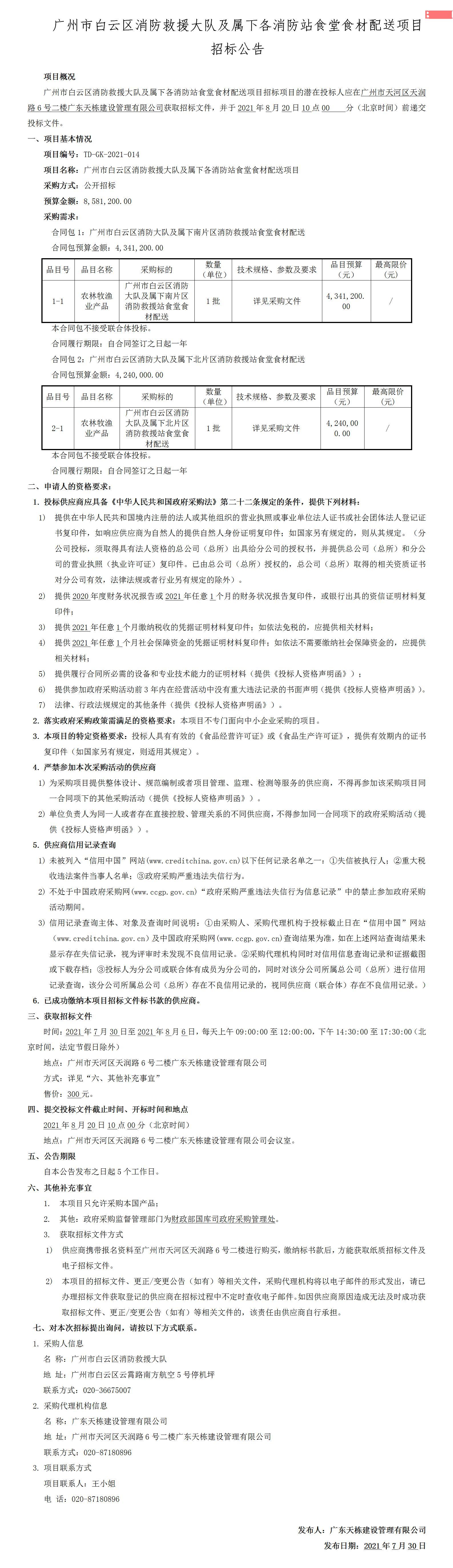 廣州市白云區(qū)消防救援大隊(duì)及屬下各消防站食堂食材配送項(xiàng)目